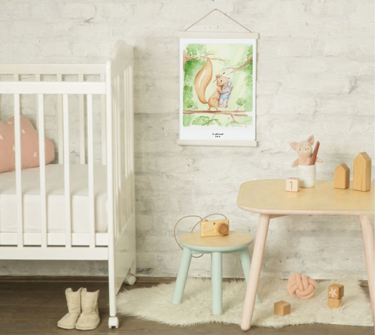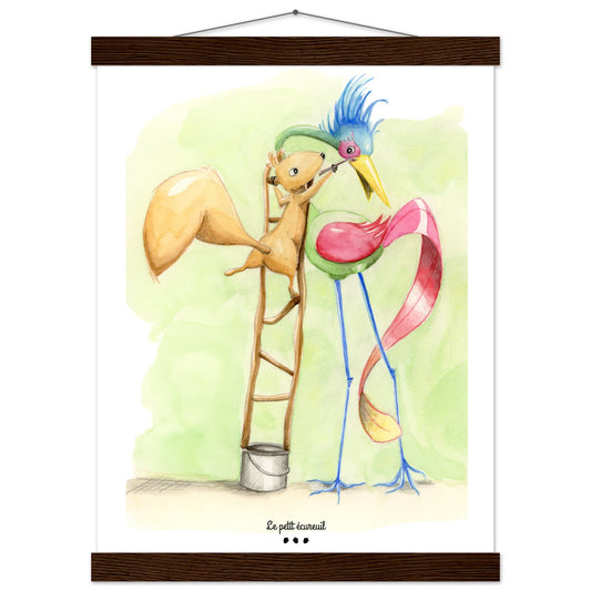 Affiche Eric l'écureuil - Barres de suspension magnétiques bois