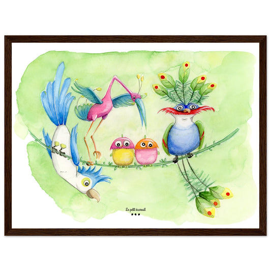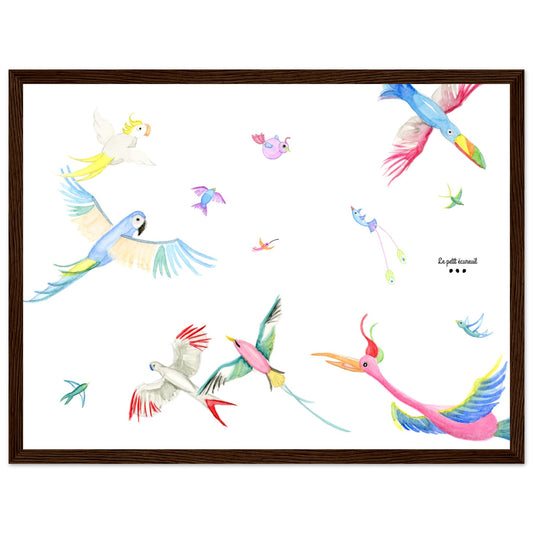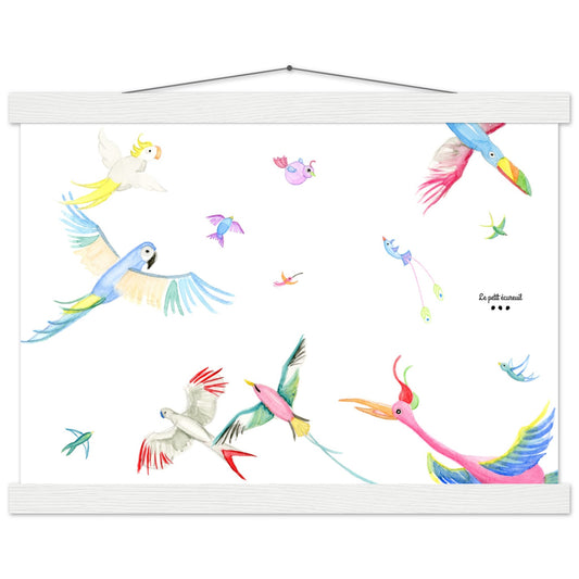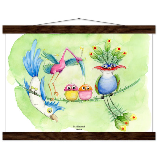Affiche le bal des oiseaux colorés - Barres de suspension magnétiques bois